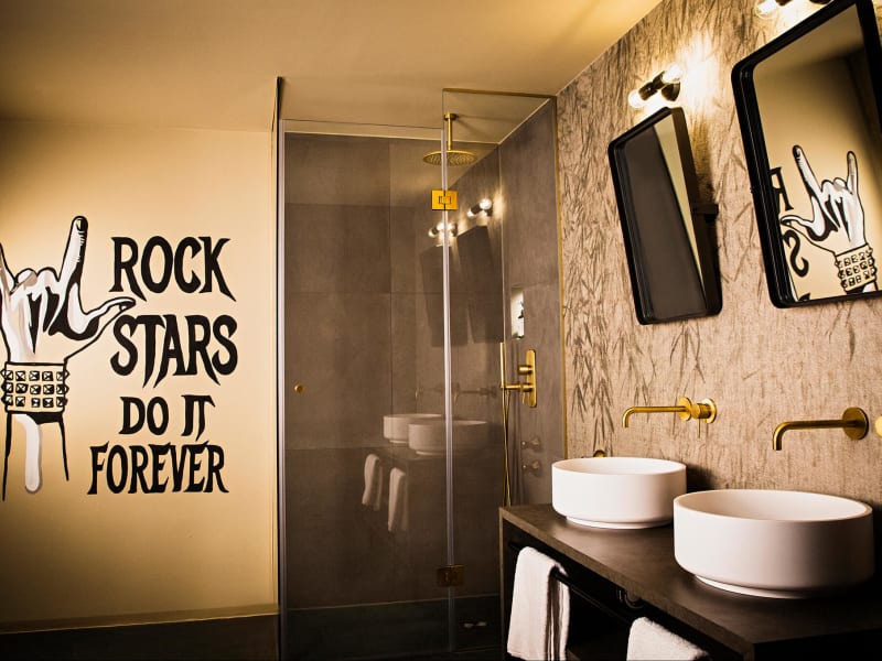 Ob als Rückzugsort, zum Schlafen oder um die Nacht zum Tag zu machen: Die 63 Zimmer und Suiten des JAMS Design-Hotel bieten Raum zum Ankommen und Relaxen. Sie vereinen modernen Komfort mit glamourösem Retro-Chic und sind mit allen Annehmlichkeiten ausgestattet, die eine Übernachtung zu einem Event werden lässt. Luxuriöse Komfortbetten – selbstverständlich samt hochwertiger Bettwäschekollektion und Pillow-Line-up mit hypoallergenen Kissen – versprechen süße Träume. Wer noch nicht müde ist, spielt einfach noch ein paar Platten und gönnt sich einen Drink aus der kostenlosen Minibar. Individuelle Wall-Art, warme Lichtelemente und raumbreite Fenster mit gepolsterten Sitzflächen sorgen für eine entspannte Wohlfühlatmosphäre. Und das alles auf den Spuren von Musiklegenden – die perfekte Symbiose aus Rock ‘n’ Roll und Ruhe.