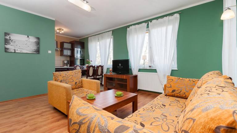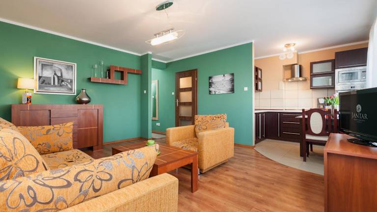 Das Jantar Apartamenty - Zielone Tarasy befindet sich im Kurviertel von Kolberg, nur 700 m vom Strand entfernt. In der Umgebung lädt der Küstenlandschaftspark zu Erkundungstouren ein. Die Unterkunft ist 3 km vom Leuchtturm Kolberg und 2 km vom Bahnhof Kolberg entfernt.