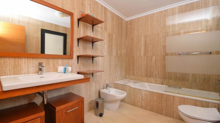 Die Ferienwohnung umfasst 3 Schlafzimmer, ein Wohnzimmer und eine voll ausgestattete Küche mit Kühlschrank und Kaffeemaschine. Insgesamt stehen 4 Badezimmer mit Bidet und Dusche zur Verfügung. Zudem werden Handtücher und Bettwäsche zur Verfügung gestellt.