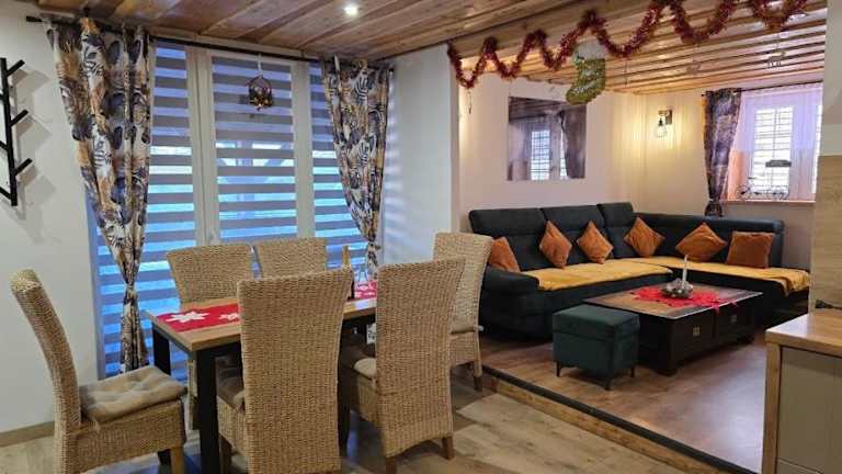 Jaśkowa Chata Bieszczady apartament z basenem ist eine gemütliche Unterkunft, die von einem privaten Gastgeber geführt wird. Diese Nichtraucherunterkunft bietet sowohl eine Gemeinschaftslounge als auch eine Terrasse und ist damit einladend für alle Gäste.
