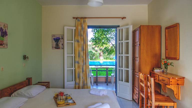 Die Apartments und Studios sind geräumig und bieten eine Aussicht auf den Garten sowie den Pool. Zur Ausstattung gehören eine Küchenzeile mit Kochplatten, Mikrowelle, Kühlschrank und Wasserkocher. Jedes Apartment verfügt über ein eigenes Bad mit einer Dusche.