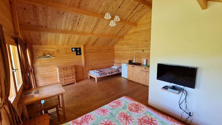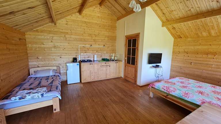 Alle Wohneinheiten verfügen über eine eigene Terrasse, eine Küche mit Kühlschrank und Herdplatte sowie ein eigenes Badezimmer mit Dusche. Die Unterkunft setzt auf Hygiene und Sicherheit, indem zwischen Aufenthalten desinfiziert wird und Bettwäsche sowie Handtücher nach Vorschriften gewaschen werden.