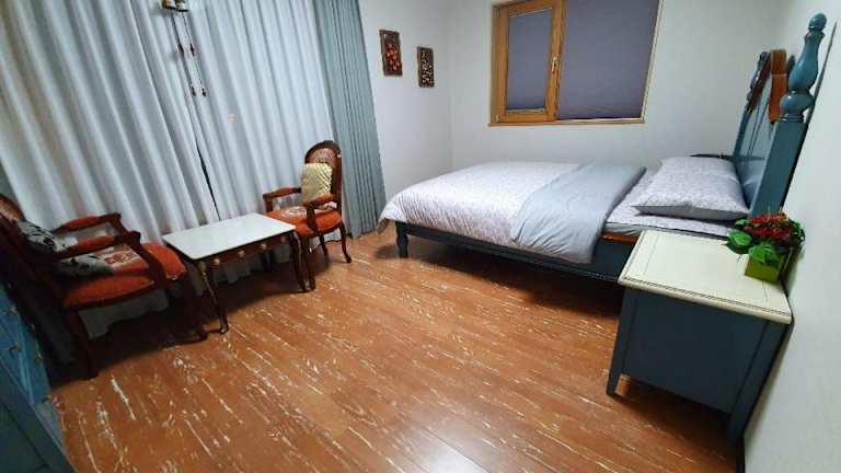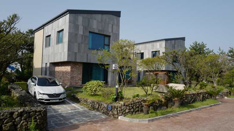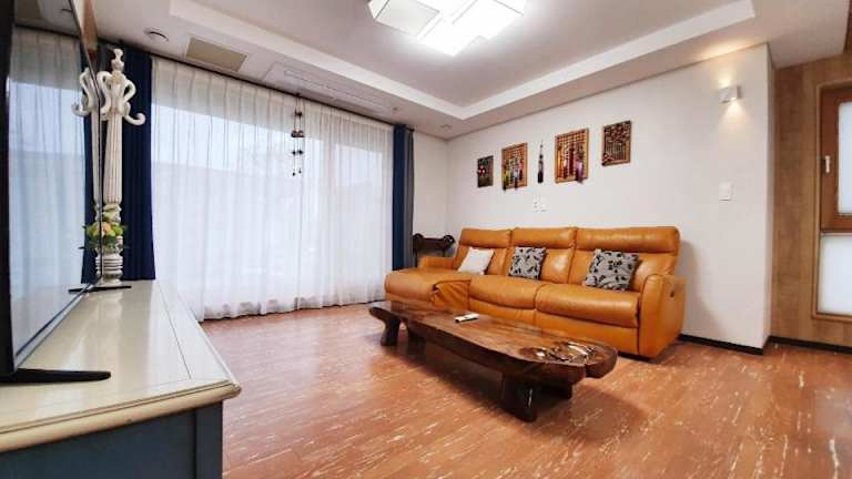 Jeju TheRiche Pension bietet Übernachtungsmöglichkeiten mit Gartenblick in einem familienfreundlichen Ferienhaus. Das Haus verfügt über eine Terrasse sowie einen Balkon mit einem schönen Ausblick.