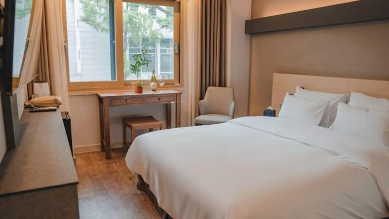 Das Jeonju Hotel The Vincent ist eine Nichtraucherunterkunft mit modernen Annehmlichkeiten und einem 24-Stunden-Sicherheitspersonal. Die Lage ermöglicht es den Gästen, die kulturellen Sehenswürdigkeiten von Jeonju leicht zu erkunden. Die Unterkunft bietet zudem einen Aufzug sowie Schallisolierte Zimmer und garantiert so eine angenehme Bequemlichkeit für die Gäste.