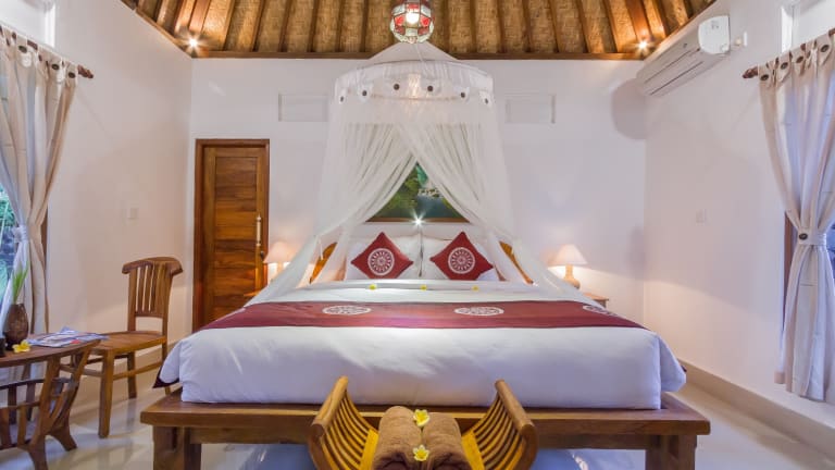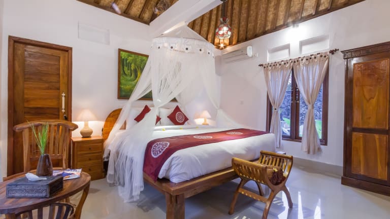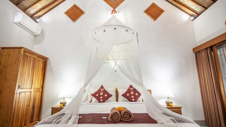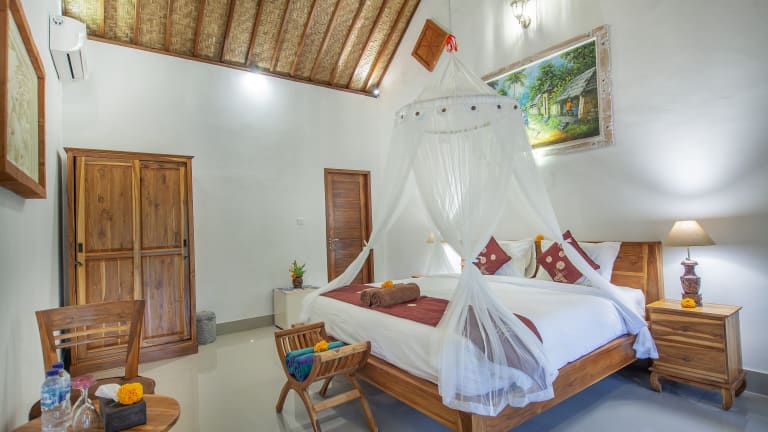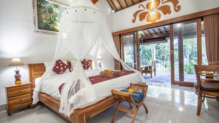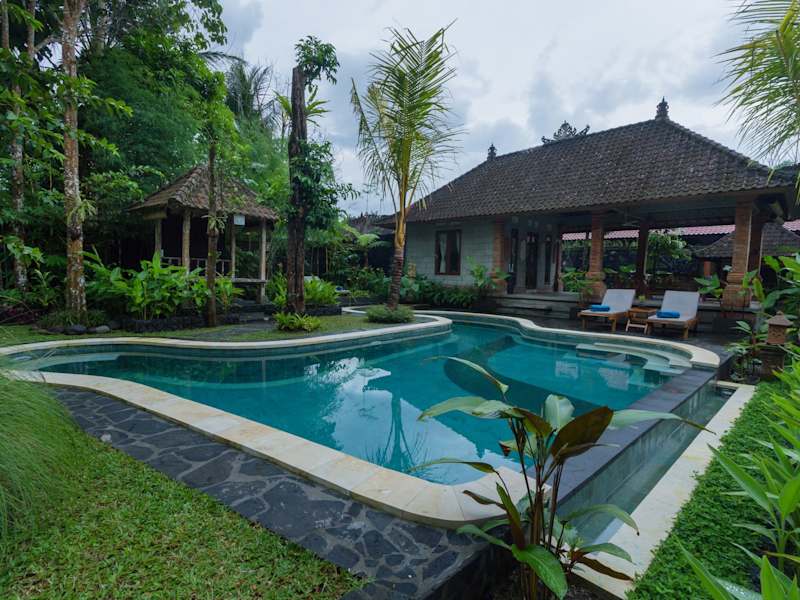 Die Jero Sebali Villa in Ubud bietet Ihnen einen traumhaften Aufenthalt inmitten der Natur. Genießen Sie den Blick auf den Pool, das köstliche Essen im Restaurant und den erstklassigen Zimmerservice. Entspannen Sie im Garten, schwimmen Sie im ganzjährig geöffneten Außenpool und entspannen Sie auf der Terrasse. Das kostenlose WLAN ermöglicht es Ihnen, jederzeit mit der Welt in Verbindung zu bleiben. Starten Sie Ihren Tag mit einem kontinentalen oder amerikanischen Frühstück. Die Villa bietet auch Fahrradverleih und Autovermietung an, um die Umgebung zu erkunden. Nutzen Sie die Möglichkeit, die Umgebung mit dem Fahrrad zu erkunden. Besuchen Sie das Kunstmuseum Neka oder das Blanco Museum, die beide in der Nähe liegen. Der internationale Flughafen Denpasar ist nur 38 km entfernt und die Unterkunft bietet einen kostenpflichtigen Flughafentransfer.