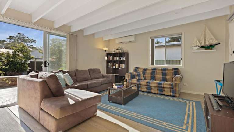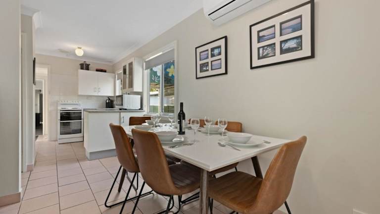 Jervis Beach House by Experience Jervis Bay besticht durch klimatisierte Übernachtungsmöglichkeiten mit einer gemütlichen Veranda oder einem Patio. Das Ferienhaus verfügt über eine einladende Terrasse und ist ideal für einen erholsamen Aufenthalt.