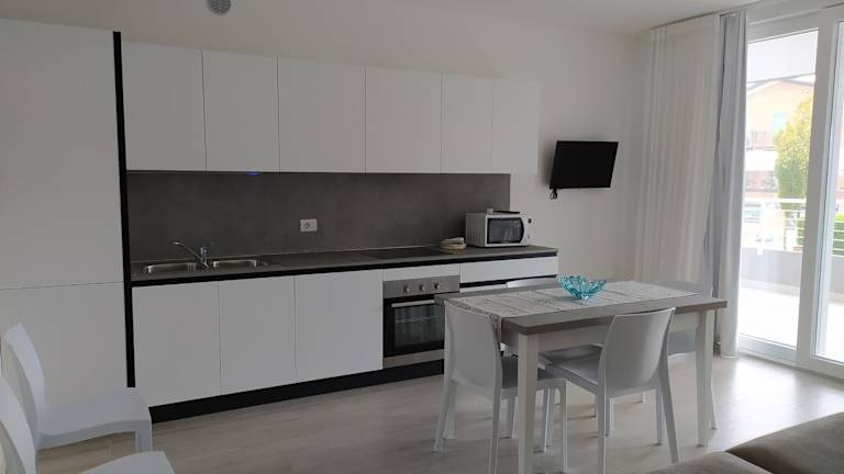 Die Unterkunft Jesolo Appartamenti F2 - Light Blue bietet eine Terrasse, kostenloses Wifi sowie eine Waschmaschine. Zudem steht ein saisonaler Aussenpool zur Verfügung.