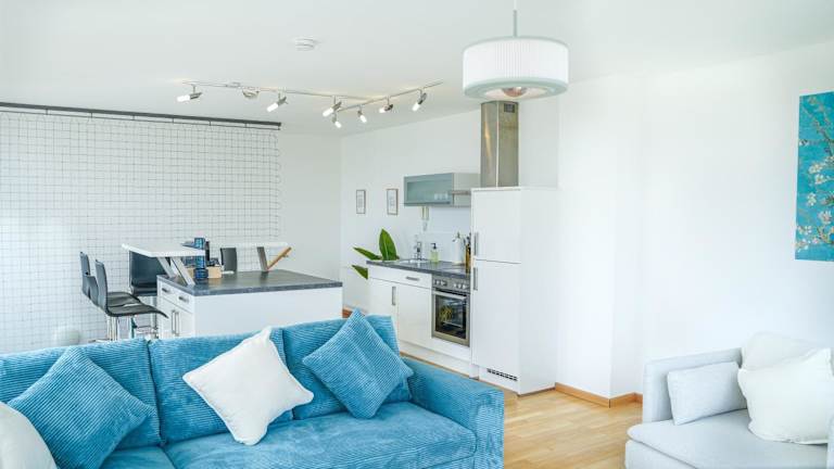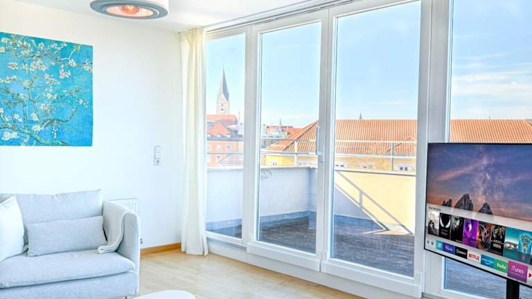 Das JH Apartments Ingolstadt - Penthouse bietet eine großzügige Wohnfläche von 105 qm mit einer Dachterrasse und einer Terrasse mit Flussblick. Die Unterkunft verfügt über eine Nichtraucherpolitik und wird von einem privaten Gastgeber geführt. Bei der Ankunft sind spezielle Sicherheitsrichtlinien zu beachten, und die Unterkunft hat Maßnahmen zur Gesundheitssicherheit implementiert.