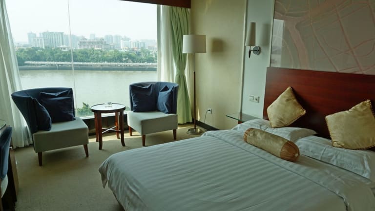 Das Hotel befindet sich am Ufer des Pearl River, gegenüber der europäisch geprägten Shamian-Insel. Es liegt im Zhouzui-Park und bietet einen tollen Blick auf den Fluss sowie eine gute Anbindung an verschiedene Beförderungsmöglichkeiten. Das Stadtzentrum befindet sich ca. 4 km entfernt.