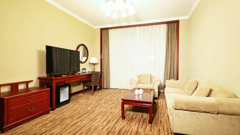 Die klimatisierten Zimmer im Jianguo Qianmen Beijing sind ausgestattet mit einem Flachbild-TV, einer Minibar, einem Essbereich mit Kühlschrank und Wasserkocher sowie einem eigenen Bad, das über eine Dusche, eine Badewanne und einen Haartrockner verfügt. Die Zimmer verfügen zudem über einen Sitzbereich und Kabel-TV. Es sind Nichtraucherzimmer vorhanden, die Platz für Familien bieten.