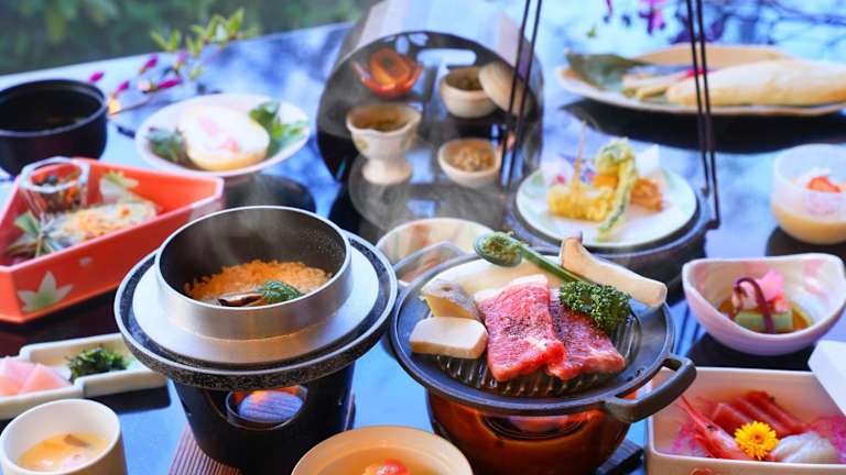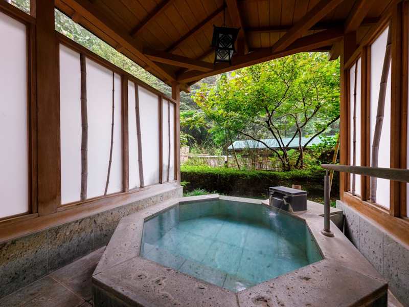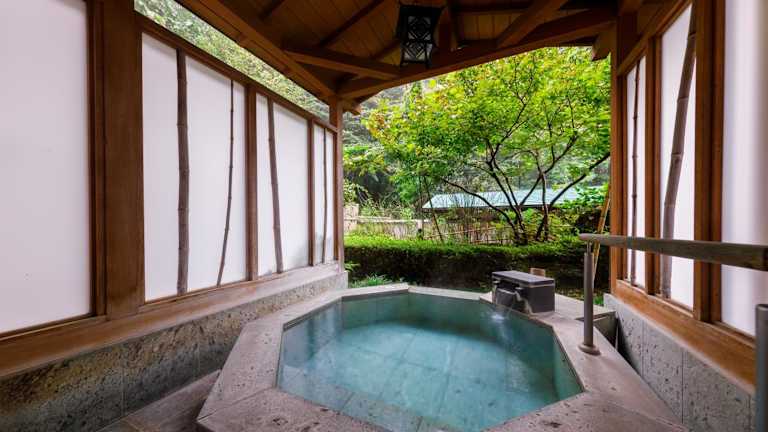 Die Zimmer im Kokoro-no-Oyado Jizai-so sind im traditionellen japanischen Stil gestaltet und bieten Tatamiböden, Futonbetten und einen gemütlichen Sitzbereich mit Blick auf die umliegende Natur. Einige Zimmer verfügen sogar über ein eigenes Thermalbad im Freien. Alle Zimmer sind mit einem LCD-TV, einem kleinen Kühlschrank und Yukata-Roben ausgestattet. WLAN nutzen Sie in allen Bereichen des Hotels kostenfrei.
