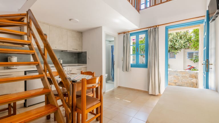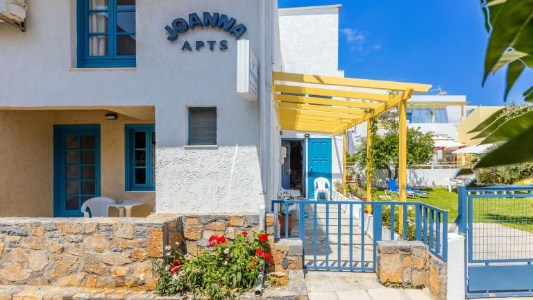 Die Joanna Apartments verfügen über eine Terrasse, einen Sitzbereich und einen Flachbild-TV. Die voll ausgestattete Küchenzeile ist mit einem Kühlschrank, einer Herdplatte, einem Toaster sowie einer Kaffeemaschine und einem Wasserkocher ausgestattet. Die Zimmer bieten zudem ein eigenes Badezimmer mit einer Dusche und einem Haartrockner. Bettwäsche, Handtücher und Wäsche werden nach Richtlinien der örtlichen Behörden gewaschen.