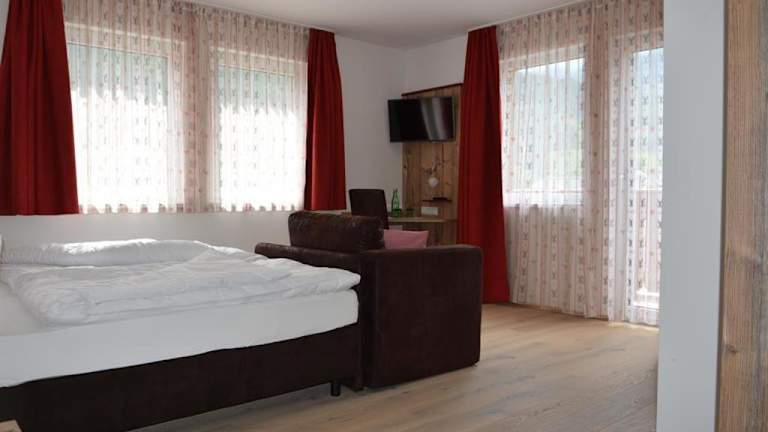 Die Zimmer in der Unterkunft Dorfstub'n Jochberg sind mit einem Satelliten Flachbild-TV ausgestattet. Handtücher und Bettwäsche werden bereitgestellt.