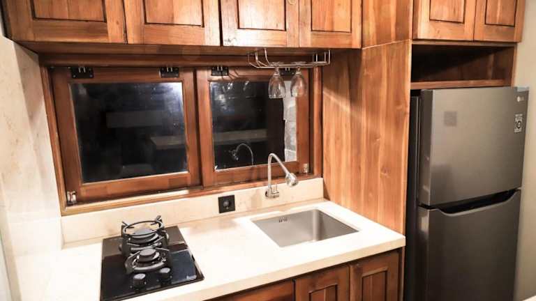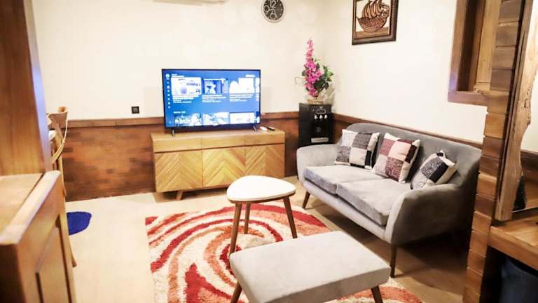 Essenslieferungen in die Unterkunft sind möglich. Für zusätzliche Bequemlichkeit stehen eine Gemeinschaftsküche und eine tägliche Reinigung zur Verfügung.