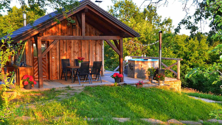Das Chalet bietet ein Schlafzimmer und ein Badezimmer, das mit einer Dusche und einem Whirlpool ausgestattet ist. Kostenlose Pflegeprodukte stehen ebenfalls zur Verfügung.