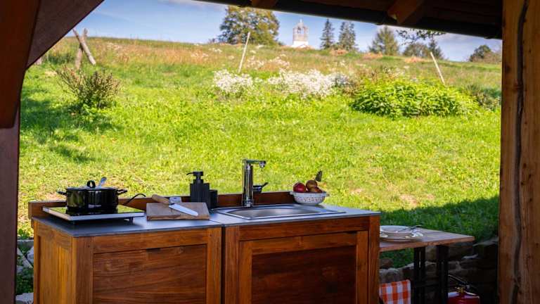Die Küche ist ausgestattet mit einem Kühlschrank, einer Minibar, einer Herdplatte sowie einer Kaffeemaschine und einem Wasserkocher. Weitere Verpflegungsmöglichkeiten sind nicht angegeben.