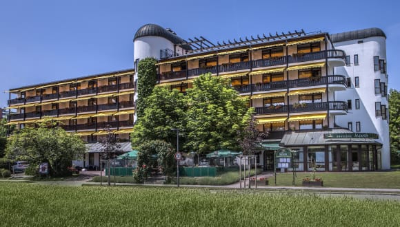 Das 4-Sterne Johannesbad Thermalhotel Ludwig Thoma liegt ruhig am Ortsrand von Bad Füssing, die Bushaltestelle befindet sich direkt neben dem Haus. In wenigen Minuten erreichen Sie zu Fuß Parkanlagen, den Wald oder die Kurallee mit ihren Cafés, Geschäften und Lokalen. Auch die Johannesbad Therme ist schnell erreichbar – zu Fuß, mit dem Rad oder dem kostenfreien Ortsbus. Das Hotel bietet geräumige Zimmer und Suiten mit Balkon, Kaffee-/Teestation, Flat-TV, Safe, Minibar, Duschbad, kostenfreiem WLAN und weiteren durchdachten Ausstattungsdetails. Der hoteleigene Wellnessbereich bildet das Herzstück: mit Thermal-Innenpool und Whirlpool, gespeist aus der original Bad Füssinger Thermal-Mineralquelle, sowie Sauna, Dampfbad und Salzgrotte. Anwendungen durch erfahrene Therapeut:innen können dazugebucht werden. Zum Frühstück erwartet Sie ein reichhaltiges Vitalbuffet, abends – bei gebuchter Halbpension – ein abwechslungsreiches kalt-warmes Buffet mit regionalen Gerichten und großem Salatbuffet. Im Sommer genießen Sie Ihre Mahlzeiten im Biergarten unter Kastanien, an kühleren Tagen im Wintergarten mit Blick ins Grüne. Wer gern aktiv ist, startet direkt vom Hotel aus zu Rad- oder Wandertouren in die umliegende Natur oder ins benachbarte Österreich. Leihfahrräder und Nordic-Walking-Stöcke sind vor Ort erhältlich. Ein Ort für bewusste Erholung, Bewegung in der Natur – und das gute Gefühl, gut aufgehoben zu sein.