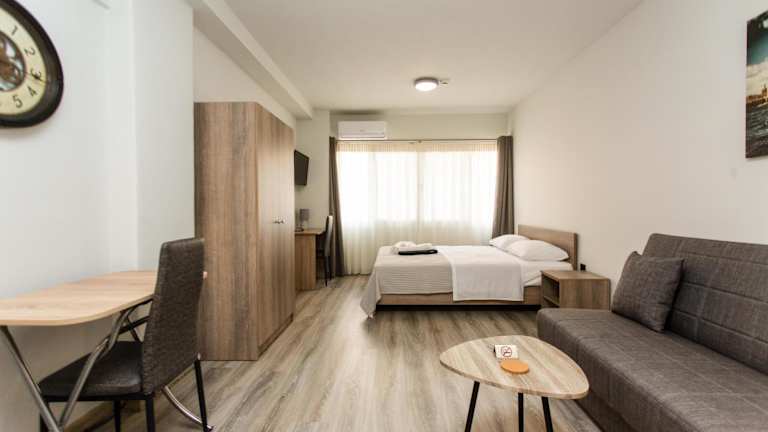 Die Wohneinheiten sind mit einer voll ausgestatteten Küche inklusive Esstisch, Flachbild-TV mit Kabelkanälen sowie einem eigenen Badezimmer mit Dusche, kostenlosen Pflegeprodukten und Haartrockner ausgestattet. Zusätzlich sind Kühlschrank, Ofen, Herdplatte und Wasserkocher vorhanden.