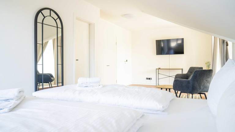 Die Zimmer sind jeweils mit einem Balkon versehen und bieten ein eigenes Badezimmer. Zudem sind ein Haartrockner und Bettwäsche im Zimmer vorhanden.