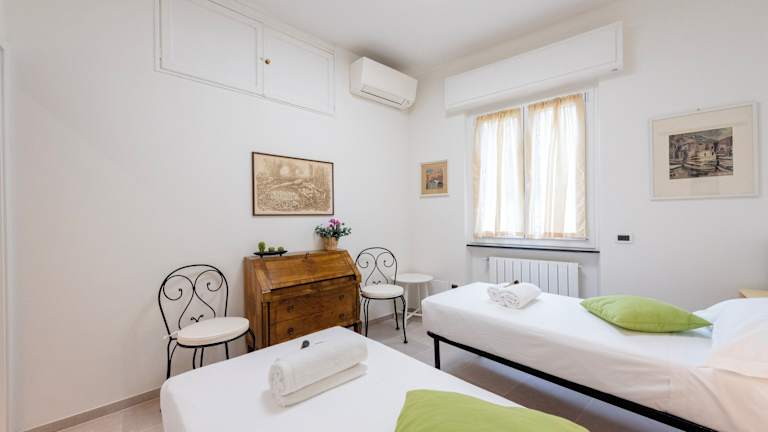 Die Ferienwohnung ist klimatisiert und besteht aus zwei Schlafzimmern, einem Wohnzimmer sowie einer voll ausgestatteten Küche mit Kühlschrank und Kaffeemaschine. Es sind zwei Badezimmer mit Bidet und Dusche vorhanden. Handtücher und Bettwäsche werden bereitgestellt.