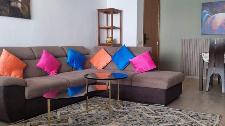 Die Ferienwohnung besteht aus 2 Schlafzimmern, einem Wohnzimmer und einer voll ausgestatteten Küche mit Kühlschrank und Kaffeemaschine. Es gibt 1 Badezimmer mit Bidet und Dusche. Handtücher und Bettwäsche werden zur Verfügung gestellt. Die Unterkunft hat auch einen Kinderspielplatz.