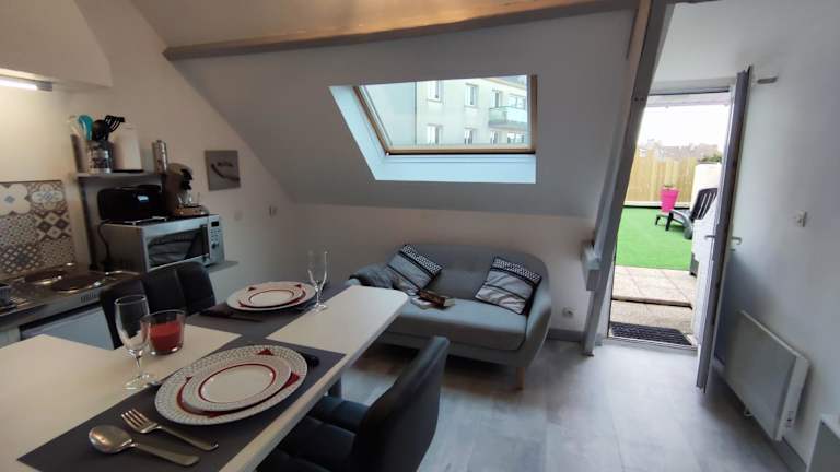 Joli petit T2 terrasse proche du phare bietet eine gemütliche Atmosphäre mit einer Terrasse. Die Unterkunft verfügt über eine Nichtraucherumgebung und wird von einem privaten Gastgeber geführt.
