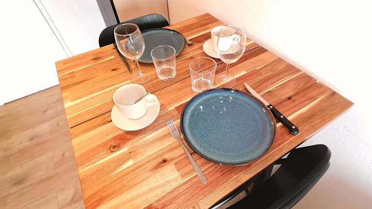 Die Ferienwohnung besteht aus einem Schlafzimmer, einem Wohnzimmer und einer voll ausgestatteten Küche mit Kühlschrank und Kaffeemaschine. Das Badezimmer ist mit einer Dusche und Haartrockner ausgestattet. Handtücher und Bettwäsche werden zur Verfügung gestellt.