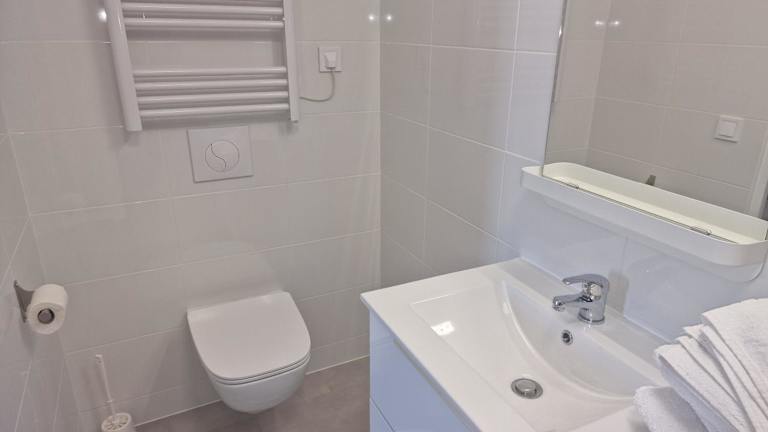 Die Ferienwohnung verfügt über 1 Schlafzimmer und 1 Badezimmer. Die Ausstattung umfasst Bettwäsche, Handtücher, einen Flachbild-TV, einen Essbereich sowie eine voll ausgestattete Küchenzeile. Die Terrasse bietet einen schönen Blick auf die Stadt.