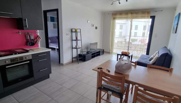 Die Ferienwohnung Joli T2 dans résidence avec parking bietet eine helle und einladende Atmosphäre. Sie verfügt über einen Balkon und eine Terrasse mit Gartenblick, die zur Entspannung einlädt. Die klimatisierte Unterkunft hat eine praktische Lage mit kostenlosem Wifi und Privatparkiermöglichkeiten.
