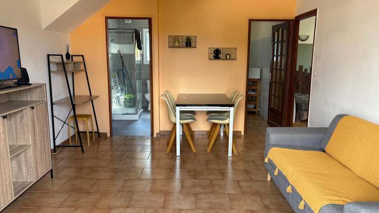 Joli T2 dans villa ist eine gemütliche Ferienwohnung, die über eine Terrasse verfügt und freien Zugang zum Garten bietet. Die Unterkunft ist eine Nichtraucherunterkunft.