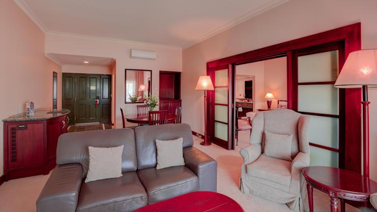 Das Resort bietet eine Auswahl an verschiedenen Zimmerkategorien, darunter Zimmer mit Zugang für behinderte Gäste, Verbindungstüren und Zweibettzimmer, die auf Anfrage erhältlich sind. Jedes Zimmer verfügt über einen privaten Balkon oder eine Terrasse und ist auf die Bequemlichkeit der Gäste ausgelegt.