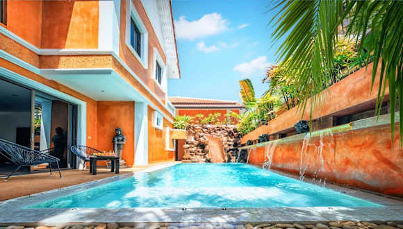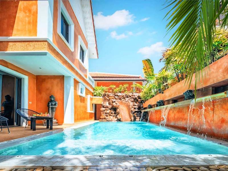 Die JOOPLAND Luxury Pool Villa Pattaya Walking Street wurde im Jahr 2023 erbaut und bietet Übernachtungsmöglichkeiten in einer luxuriösen Umgebung. Die Villa verfügt über einen Aussenpool, einen Garten und eine Terrasse, die für Entspannung und Erholung geeignet sind. Die Unterkunft ist rauchfrei und bietet eine 24-Stunden-Sicherheitsperson. Zudem sind die Gästezimmer klimatisiert und bieten einen Balkon.
