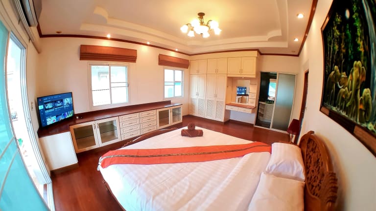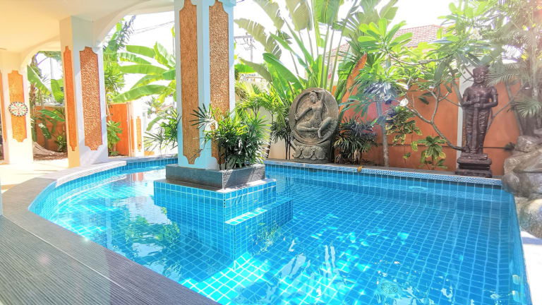 Die Grand Tanyawan Villa befindet sich in einer ruhigen Gegend von Pattaya, in der Nähe von Sehenswürdigkeiten wie der Walking Street und der Pattaya Beach Road. Die Villa liegt auch in der Nähe des Jomtien Beach und des Dongtan Beach, ideal für einen entspannten Tag am Meer. Die Umgebung bietet eine Vielzahl von Freizeitmöglichkeiten wie Mini-Golf, Onsen-Spas und Wanderwege.