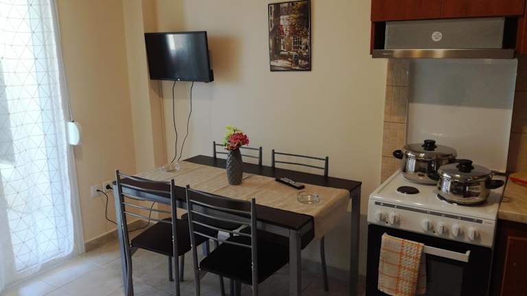Die Unterkunft befindet sich in Néoi Epivátai, nur 600 m vom Strand Agia Triada entfernt. Die Lage bietet eine gute Anbindung zum Strand und ist in der Nähe des Flughafens Thessaloniki, der lediglich 4 km entfernt ist.