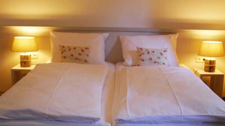 Die Ferienwohnung verfügt über zwei Schlafzimmer, einen TV mit Kabelkanälen sowie eine gut ausgestattete Küche mit Kühlschrank und Geschirrspüler. Ein Badezimmer mit Dusche ist ebenfalls vorhanden. Die Unterkunft bietet Nichtraucherzimmer und ist ideal für Gäste, die eine ruhige Auszeit suchen.