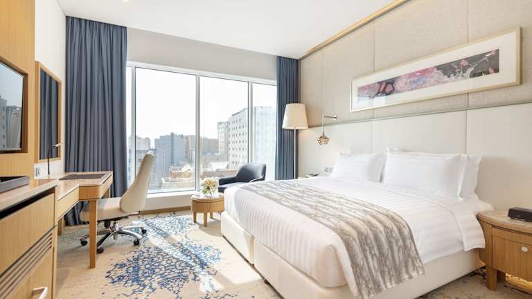 Die Zimmer sind klimatisiert und ausgestattet mit einem Schreibtisch, Wasserkocher, Minibar, sicherem Safe, Flachbild-TV und einem eigenen Badezimmer mit Bidet. Die Räume verfügen über ein Queensize-Bett oder Kingsize-Bett und sind mit Heizung, Hosenpresse, Dusche und Haartrockner ausgestattet. Rollstuhlgerechte Zimmer sind ebenfalls erhältlich.