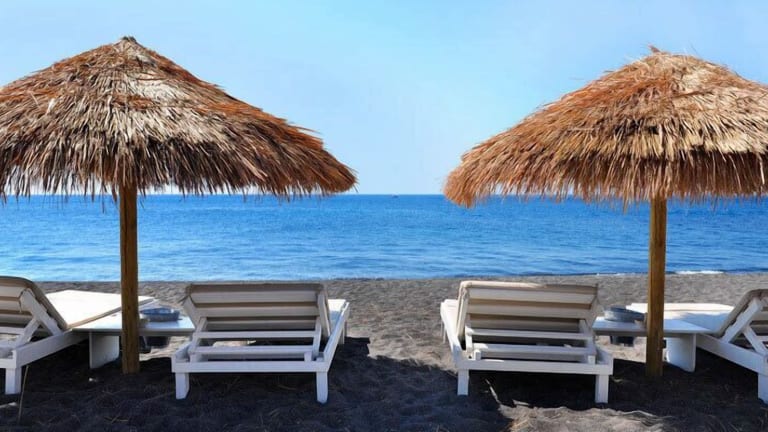 Am Strand von Perivolos laden zahlreiche Cafés und Tavernen direkt am Meer zu einem Besuch ein.