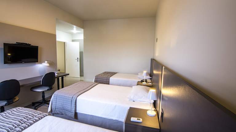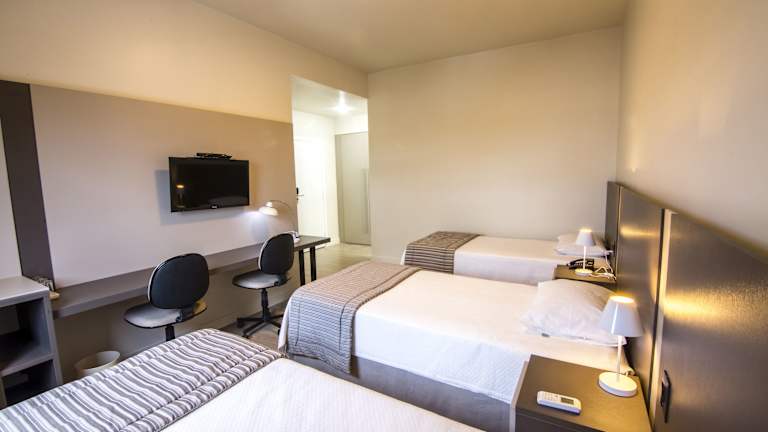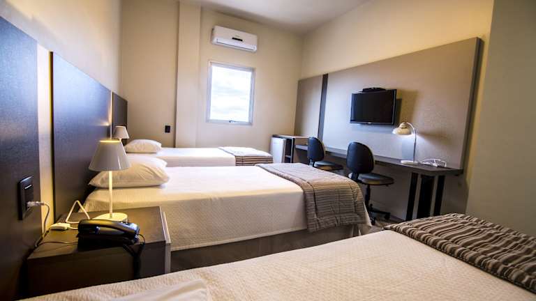 Die Zimmer im JR Hotel Marilia sind mit Kabel-TV, einer Minibar, Bettwäsche und Badetüchern ausgestattet. Jedes Zimmer verfügt über ein modernes Bad mit einer Dusche.