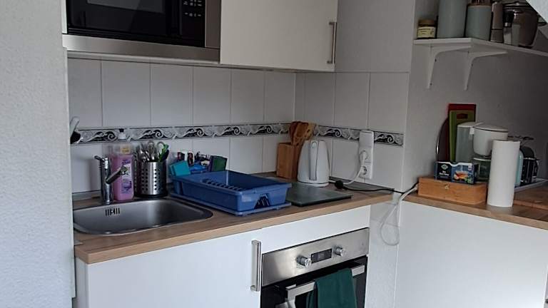 Die Ferienwohnung verfügt über eine gut ausgestattete Küche mit Kühlschrank, Ofen und Mikrowelle. Ein Badezimmer mit Dusche und Haartrockner sowie ein Flachbild-TV mit Satellitenempfang gehören ebenfalls zur Ausstattung. Die Wohnung bietet einen herrlichen Stadtblick und durch die offenen und modernen Räume sorgt sie für ein behagliches Wohnerlebnis.