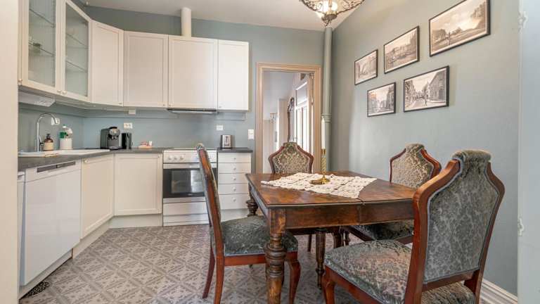 Die Ferienwohnung umfasst zwei Schlafzimmer, ein Wohnzimmer sowie eine voll ausgestattete Küche mit Kühlschrank und Wasserkocher. Ein Badezimmer mit Dusche und Haartrockner ist ebenfalls vorhanden.