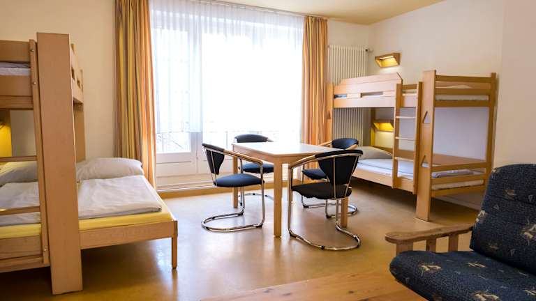 84 Betten, alle Zimmer mit Waschbecken, Duschen/WC zentral auf den Etagen, Tagesraum zum Frühstücken