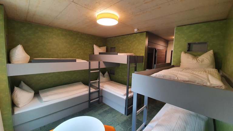Die Zimmer in der Jugendherberge sind ausgestattet mit eigenem Badezimmer. Allergikerfreundliche Zimmer stehen ebenfalls zur Verfügung. Bei Bedarf sind auch schallisolierte Zimmer verfügbar.