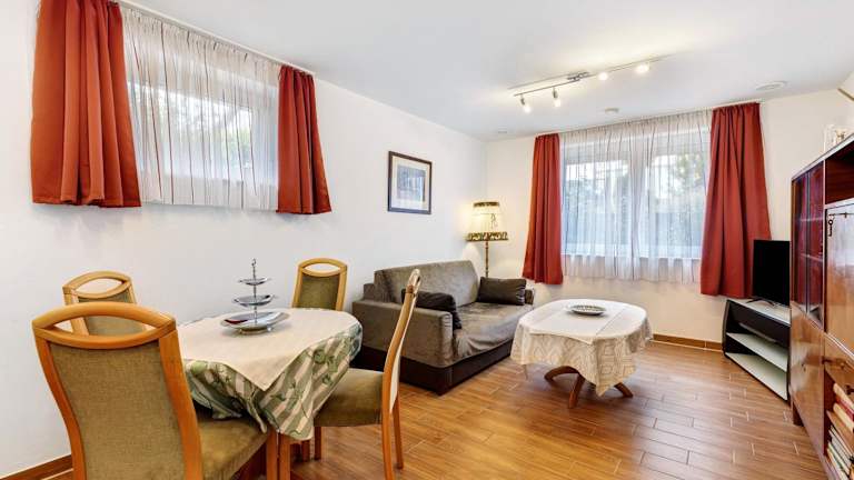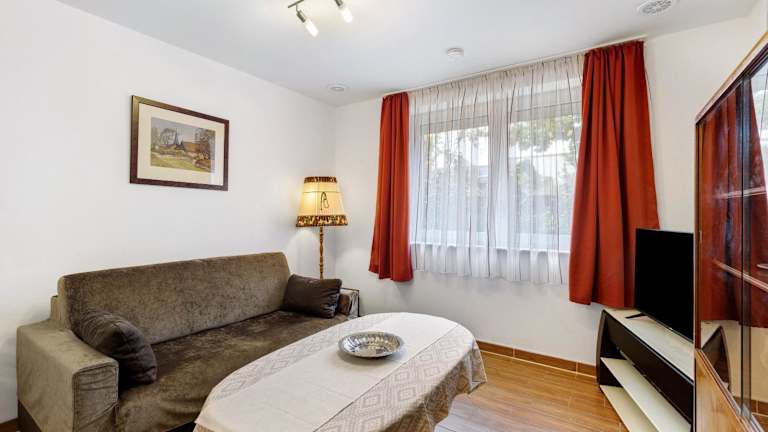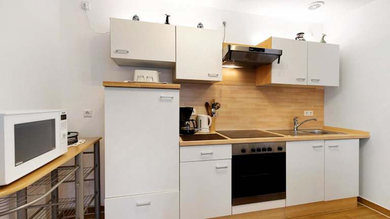 Die Ferienwohnung besteht aus 1 Schlafzimmer, einem Wohnzimmer und einer voll ausgestatteten Küche mit Kühlschrank und Kaffeemaschine. Das Badezimmer beinhaltet eine Dusche und kostenlose Pflegeprodukte. Handtücher und Bettwäsche werden bereitgestellt.