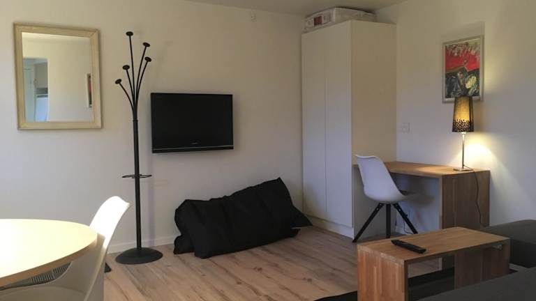 Die Ferienwohnung verfügt über ein Schlafzimmer und ein Badezimmer. Zur Ausstattung gehören Bettwäsche, Handtücher, ein Flachbild-TV sowie ein Essbereich und eine voll ausgestattete Küche. Gäste dürfen sich auf eine Terrasse mit Blick auf die Berge freuen. Allergikerfreundliche Zimmer sind verfügbar.