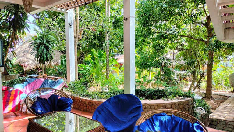 Neben dem Erkunden der Umgebung bietet das Jungle House Kep auch eine Terrasse und einen schönen Garten, in dem Sie sich entspannen und die Natur genießen können. Hier können Sie die Ruhe und Stille der Umgebung in vollen Zügen genießen.