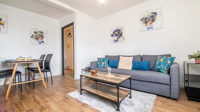 Das Apartment verfügt über ein geräumiges Wohnzimmer mit einem Flachbild-TV, in dem Sie sich entspannen können. Die voll ausgestattete Küche bietet Ihnen die Möglichkeit, Ihre eigenen Mahlzeiten zuzubereiten, und das Badezimmer bietet Ihnen Komfort und Privatsphäre. Das Apartment verfügt auch über ein Schlafzimmer, in dem Sie sich nach einem ereignisreichen Tag ausruhen können.