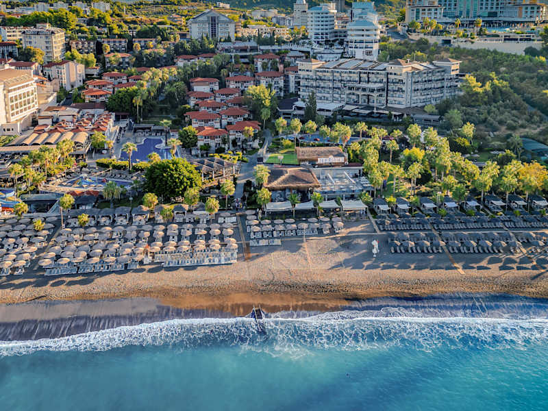 In einer ruhigen Strasse in Okurcalar gelegen, unweit des Zentrums mit diversen Einkaufsmöglichkeiten. Die Entfernung zum Flughafen beträgt ca. 95 km und zum Stadtzentrum ca. 35 km. Der privat betreute Strand sowie Sonnenliegen und Sonnenschirme sorgen für entspannte Stunden am Wasser.