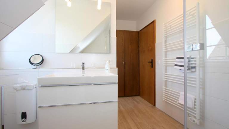 Die Ferienwohnung verfügt über 2 Schlafzimmer, eine gut ausgestattete Küche mit Kühlschrank und Geschirrspüler, sowie ein Badezimmer mit Dusche, Haartrockner und Waschmaschine. Ein TV steht ebenfalls zur Verfügung.