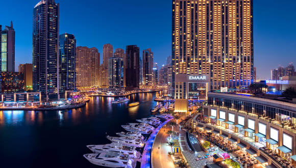 JW Marriott Hotel Marina is the definition of waterfront style, a place where crystal-clear waters are mirrored in modern architecture and luxury yachts moor alongside trend-setting restaurants. From here, the best of this dynamic district is within easy reach, directly linked to the superb Dubai Marina Mall, premier boutiques, hip lounges and Dubai’s beautiful, sunny beaches. Looking out over the world’s largest man-made marina, the finest shops, late-night lounges and trend-setting restaurants are yours to explore. A fashionista’s dream, the hotel is directly linked to Dubai Marina Mall, boasting 160 stores, from premier boutiques to designer names. Easily accessible from Dubai International Airport, Al Maktoum International Airport, and Abu Dhabi International Airport, the hotel is within close distance of Dubai Media City, Dubai Internet City, Dubai Knowledge Park and Jebel Ali Free Zone, some of the largest business hubs of the region. It is also conveniently located within close proximity of the Dubai Metro station and the Dubai Tram.