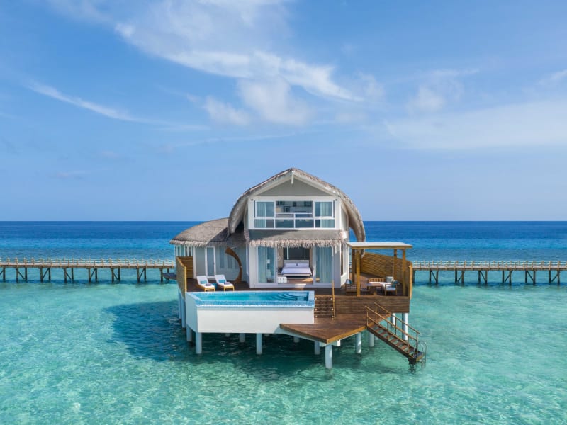 Das Hotel bietet verschiedene Villentypen, darunter Overwater Pool Villen und Beach Pool Villen, die jeweils über luxuriöse Annehmlichkeiten wie private Pools, Klimaanlage, WLAN, Minibar und Flatscreen-TV verfügen. Jede Villa ist geschmackvoll mit Materialien ausgestattet, die von der Umgebung inspiriert sind und bieten eine private Terrasse sowie einen atemberaubenden Meerblick.